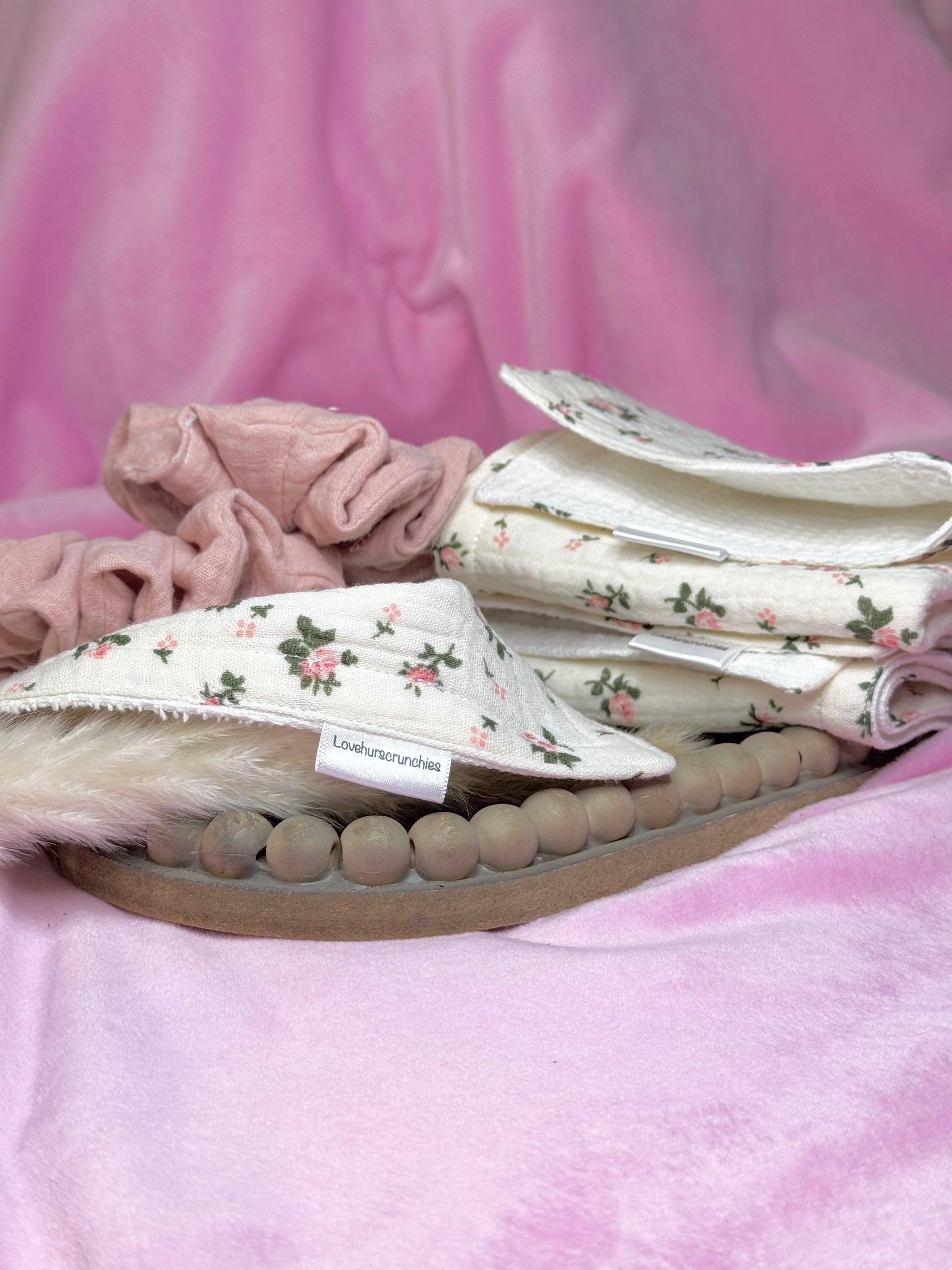 This luxurious set includes a handmade face towel featuring soft muslin fabric on one side and a textured waffle weave on the other for gentle, effective cleansing. It also comes with two scrunchies designed to keep your hair comfortably out of the way while washing your face or neatly in place throughout the day. Thoughtfully curated, this Cozy Care Set is the perfect addition to your at-home spa day collection.