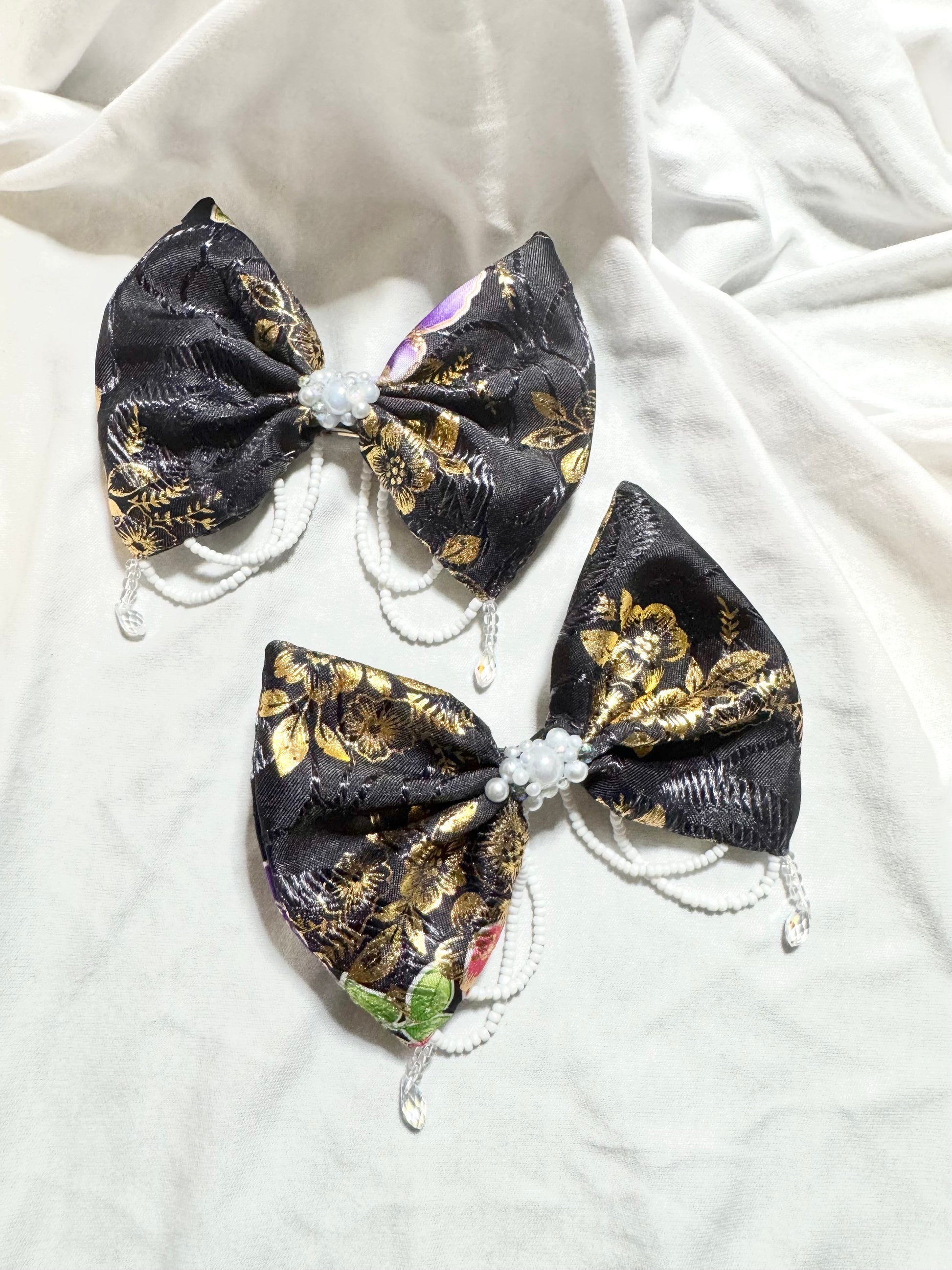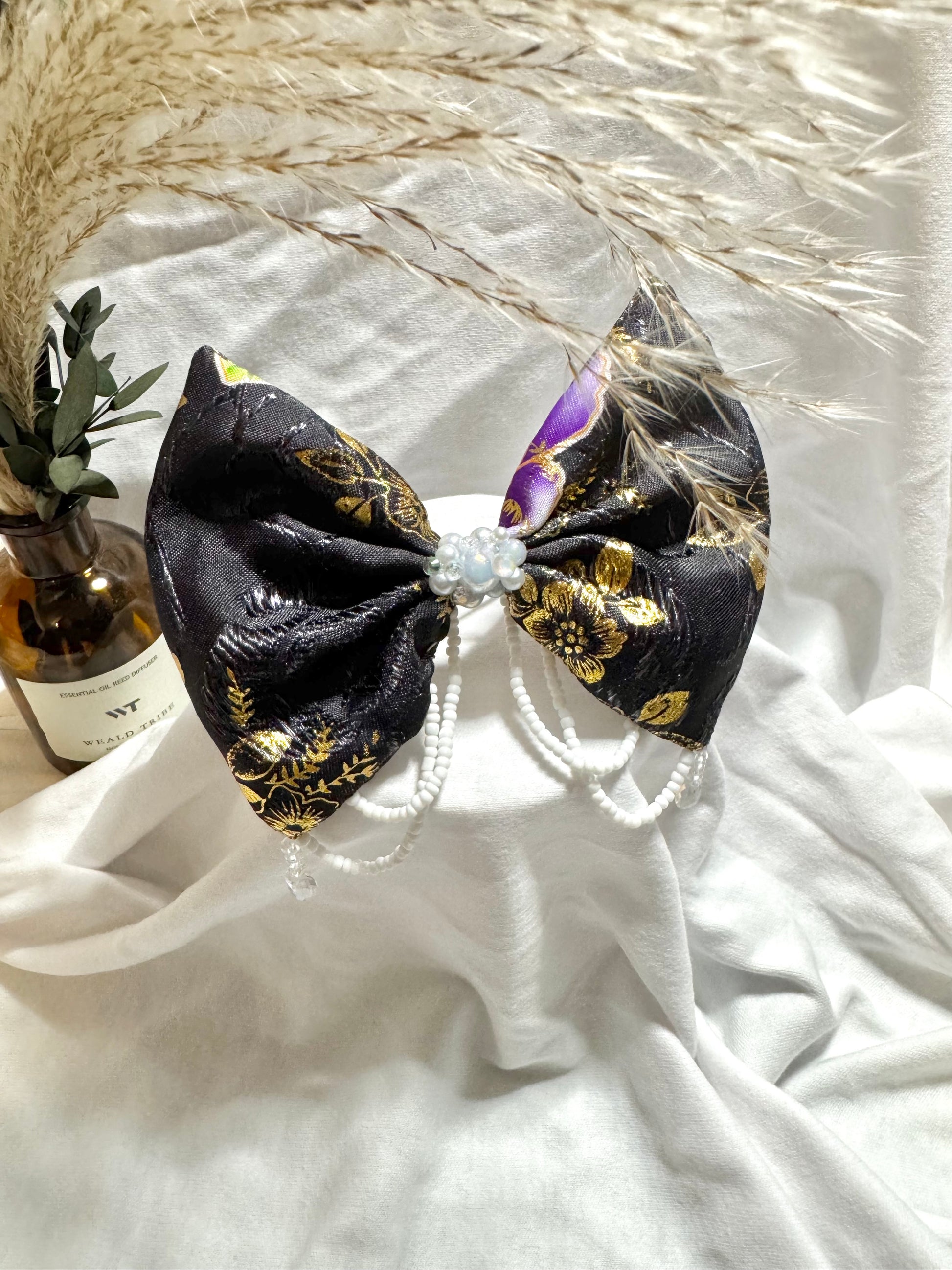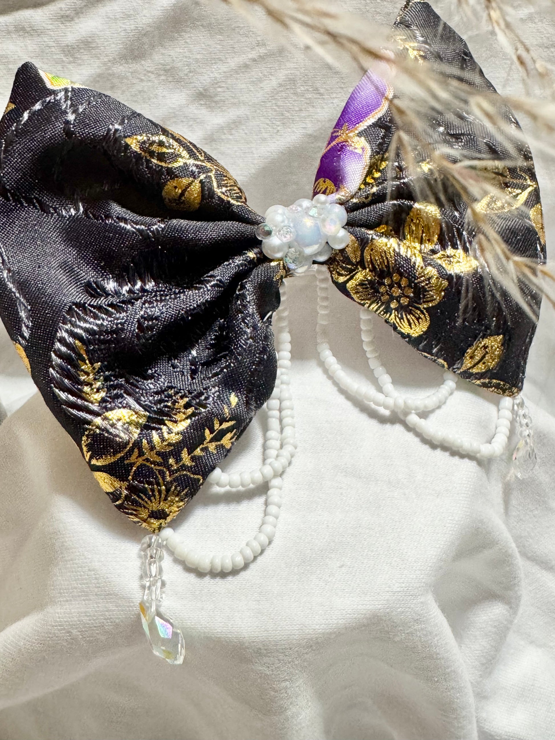 This Hmong-inspired bow is carefully handmade and hand-beaded, created to honor and share the story of our culture’s timeless, handcrafted beauty.